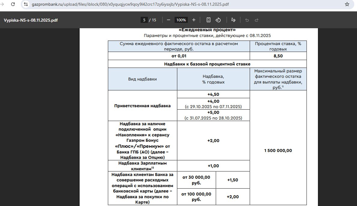 У "Газпромбанка" замечены новые тарифы по накопительным счетам с 08.11.25.