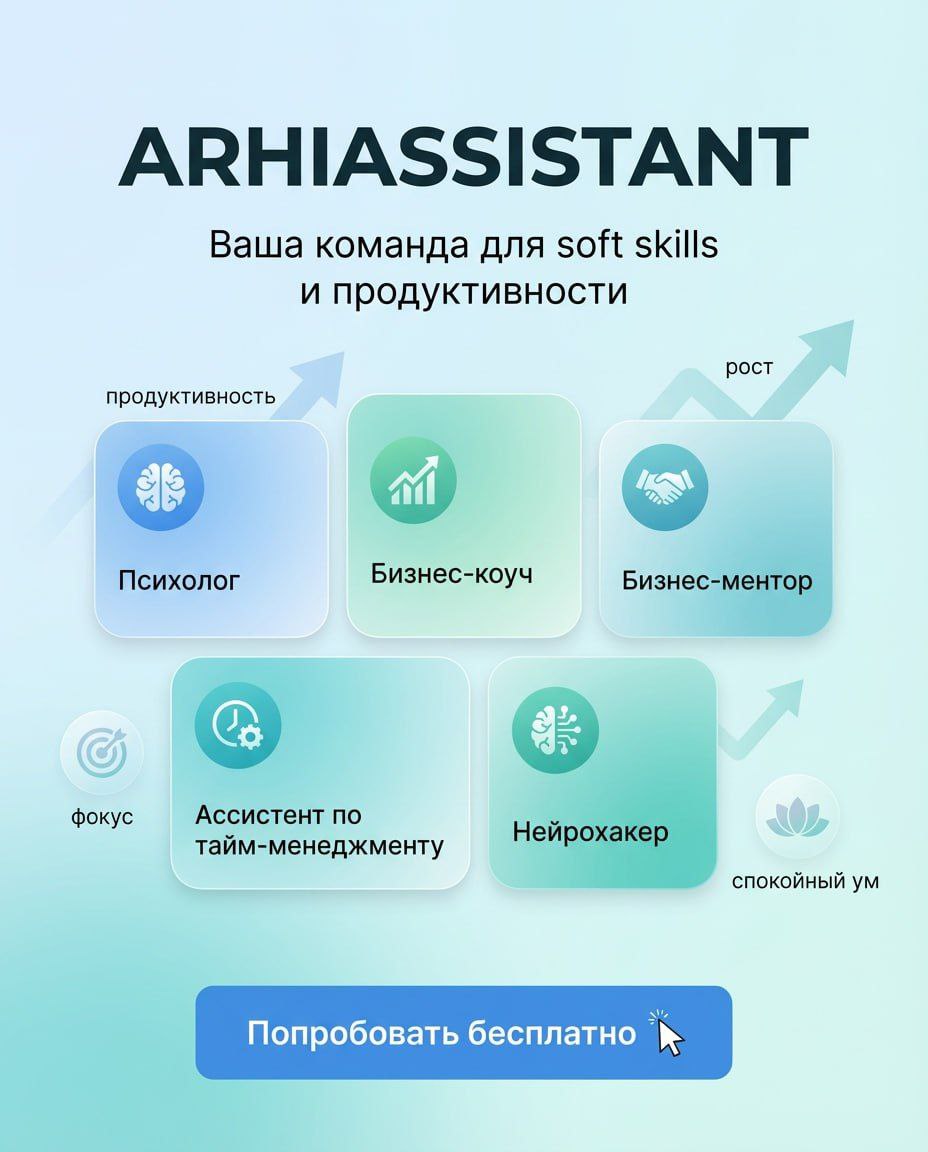 В ArhiAssistant можно протестировать ассистентов бесплатно и понять, какие из них реально помогают именно вам.