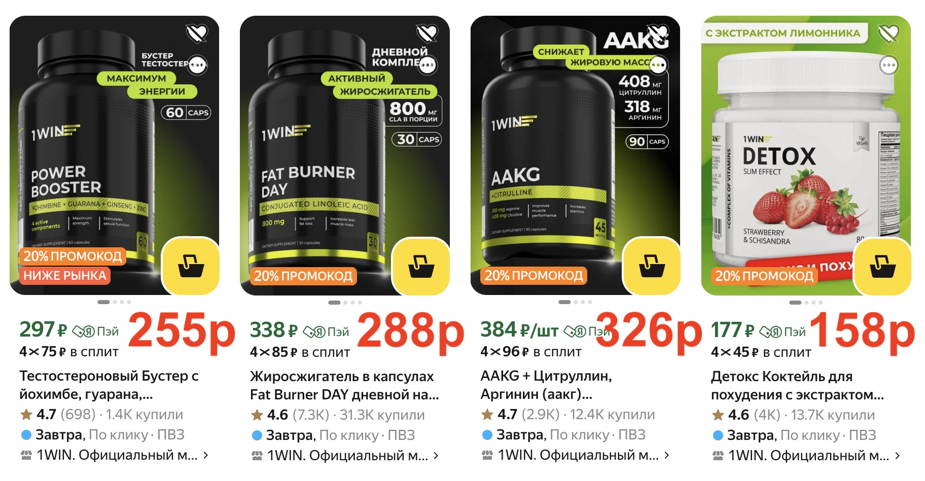 Доп.скидка 20% по коду на БАДы с Яндекс Маркет