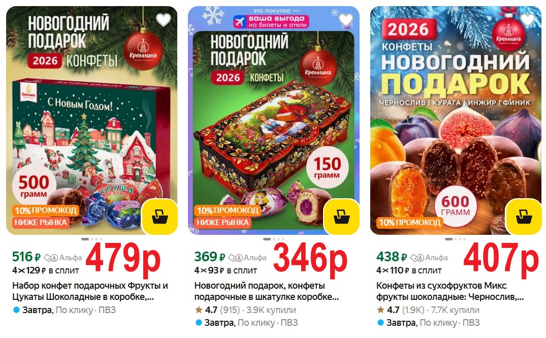 🎁 Новогодние сладости «Кремлина» со скидкой 10% на Яндекс Маркет