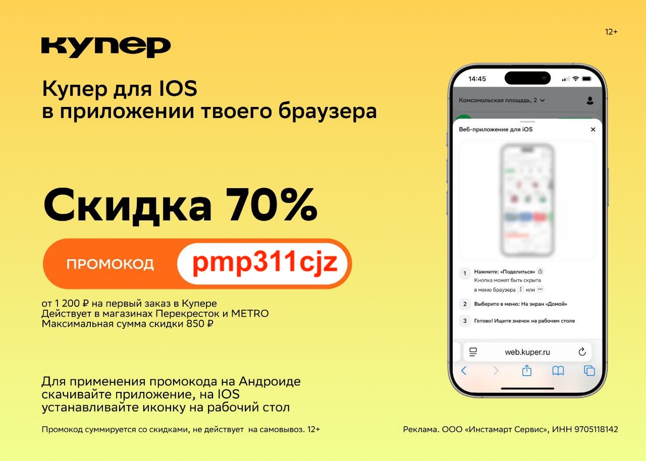 СРОЧНО! Скидка 70% по коду на первый заказ в Купере