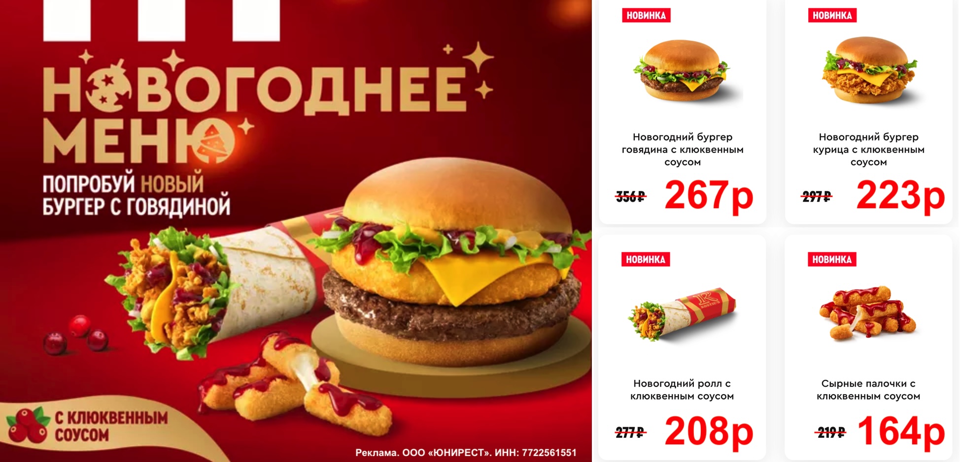 Появилось новое "Новогоднее меню" с клюквенным соусом - обязательно попробуй! А с промокодами сэкономишь до 25%👇