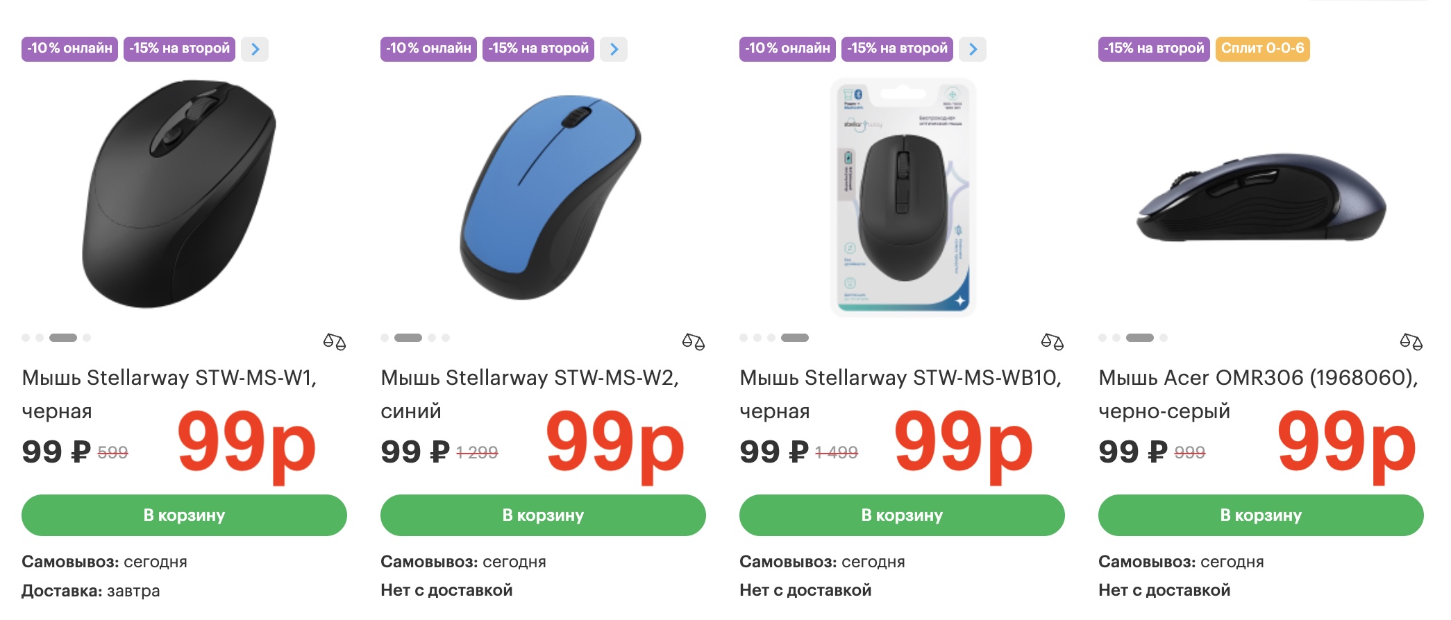 Разбираем мышки по 99р в интернет-магазине Мегафон