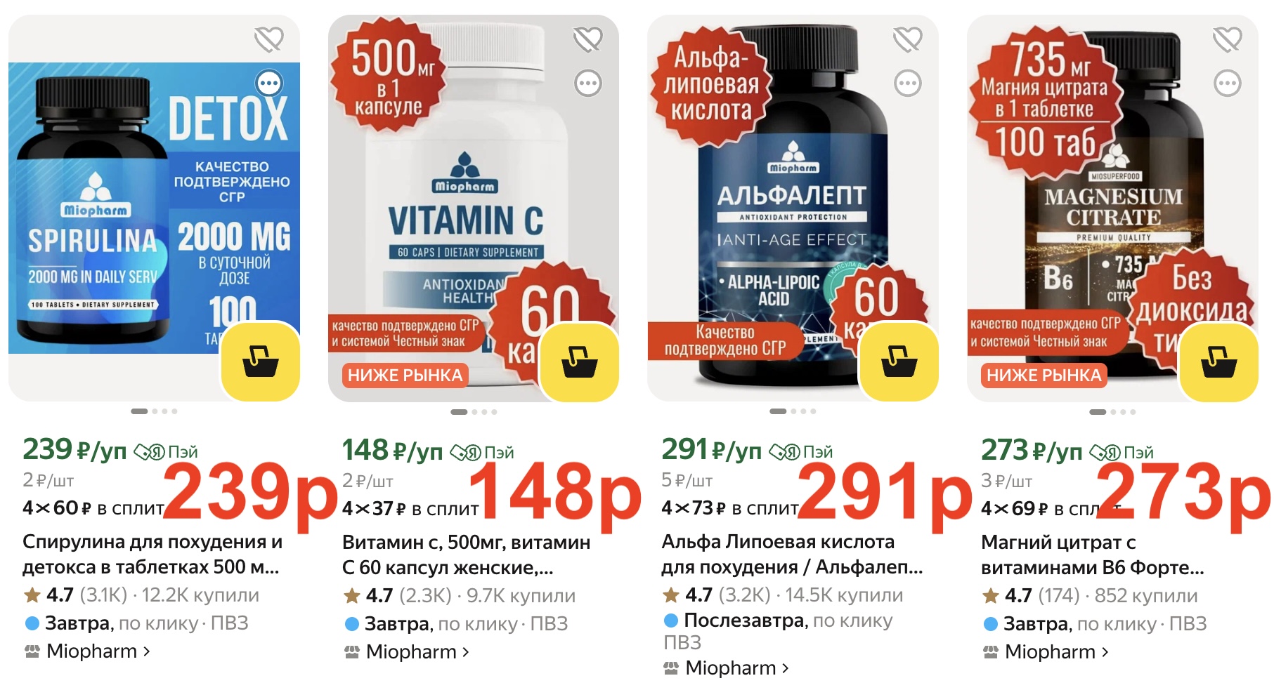 На Яндекс Маркет низкие цены на БАДы Миофарм