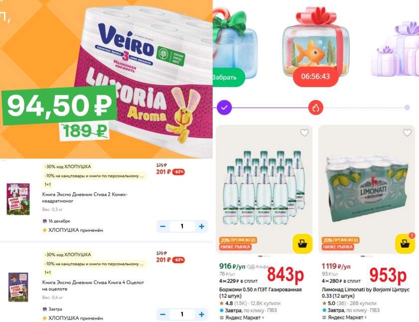 Закупайся продуктами и декором на Новый год по выгодным ценам! А с промокодами сэкономишь до 1000р на заказе товаров без скидок 👇