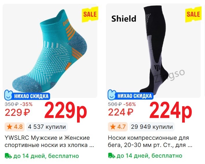 🔥 Компрессионные носки и гетры уже от 133р на AliExpress