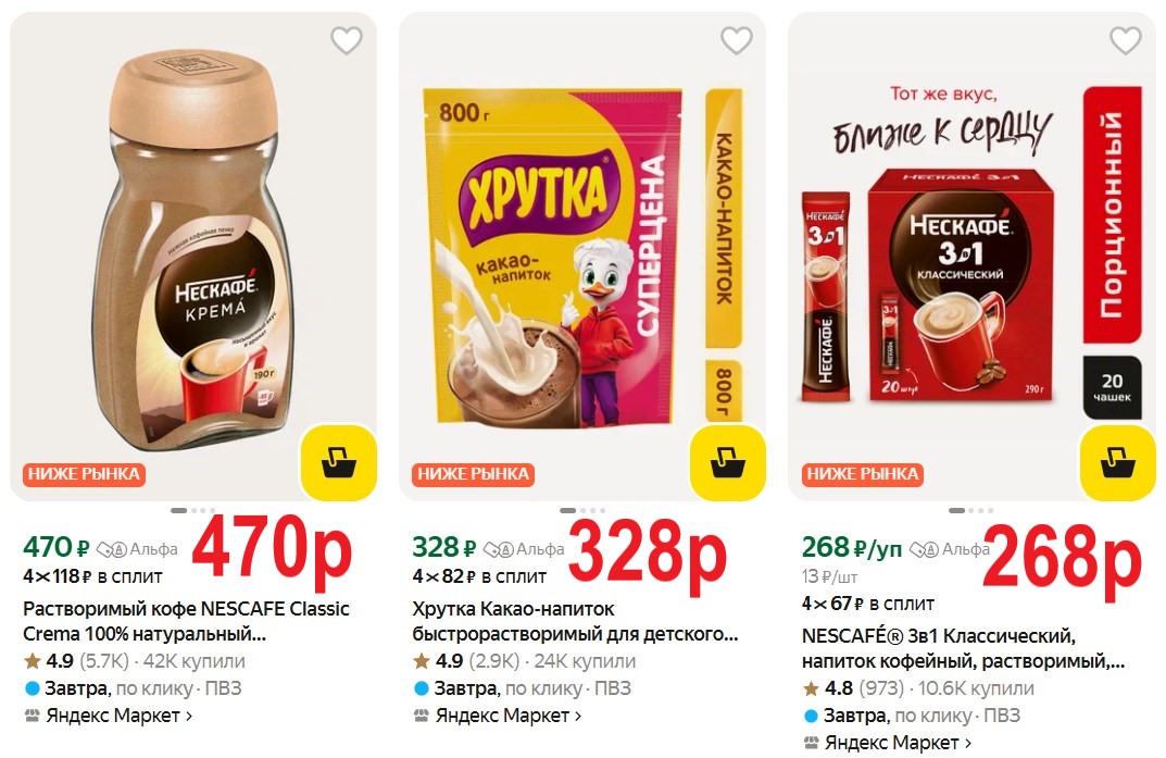 Какао-напитки Хрутка и растворимый кофе Nescafe по отличным ценам на Яндекс Маркет