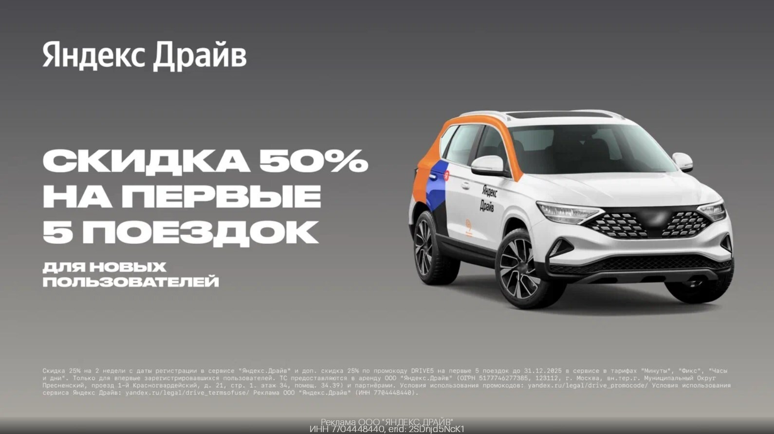 🔥 Попробуй каршеринг с двойной выгодой от Яндекс Драйв