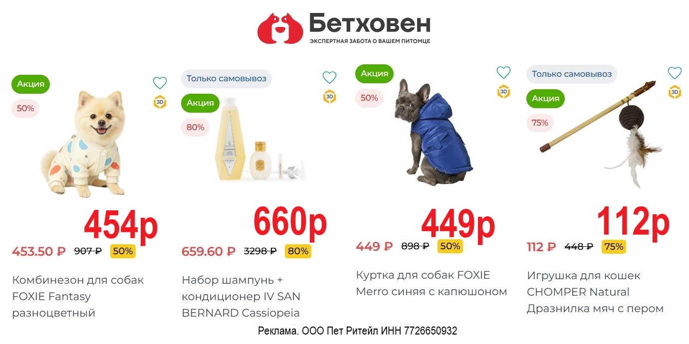 🐾 Бетховен: скидки до 15% на всё для питомцев