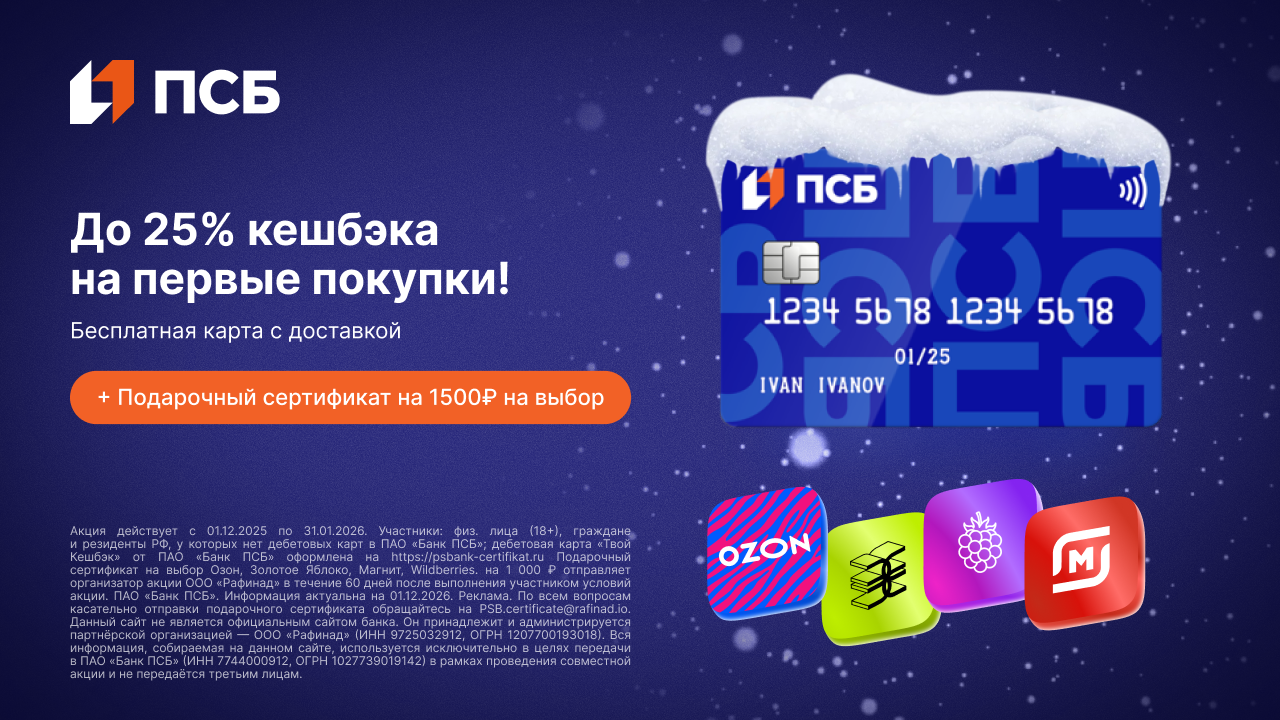 🔥 Дебетовая карта от ПСБ, которая окупается сразу: кешбэк 25% + сертификат 1500р
