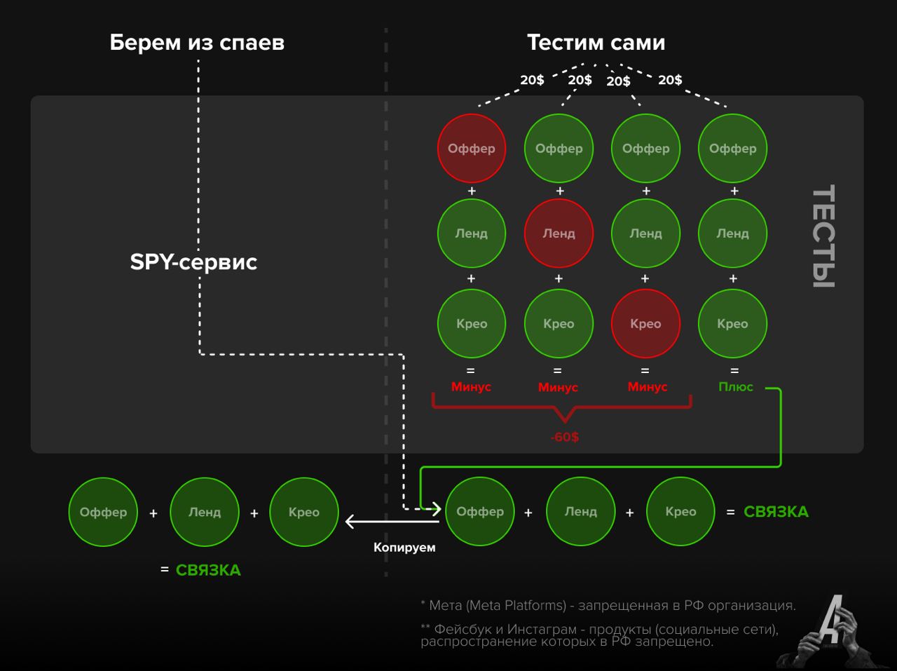 В случае с поиском через спаи, ты концентрируешься на том, как верно технически скопировать связку и как выследить ту, что действительно конвертит, а не является чьим-то тестом, который не зашел.