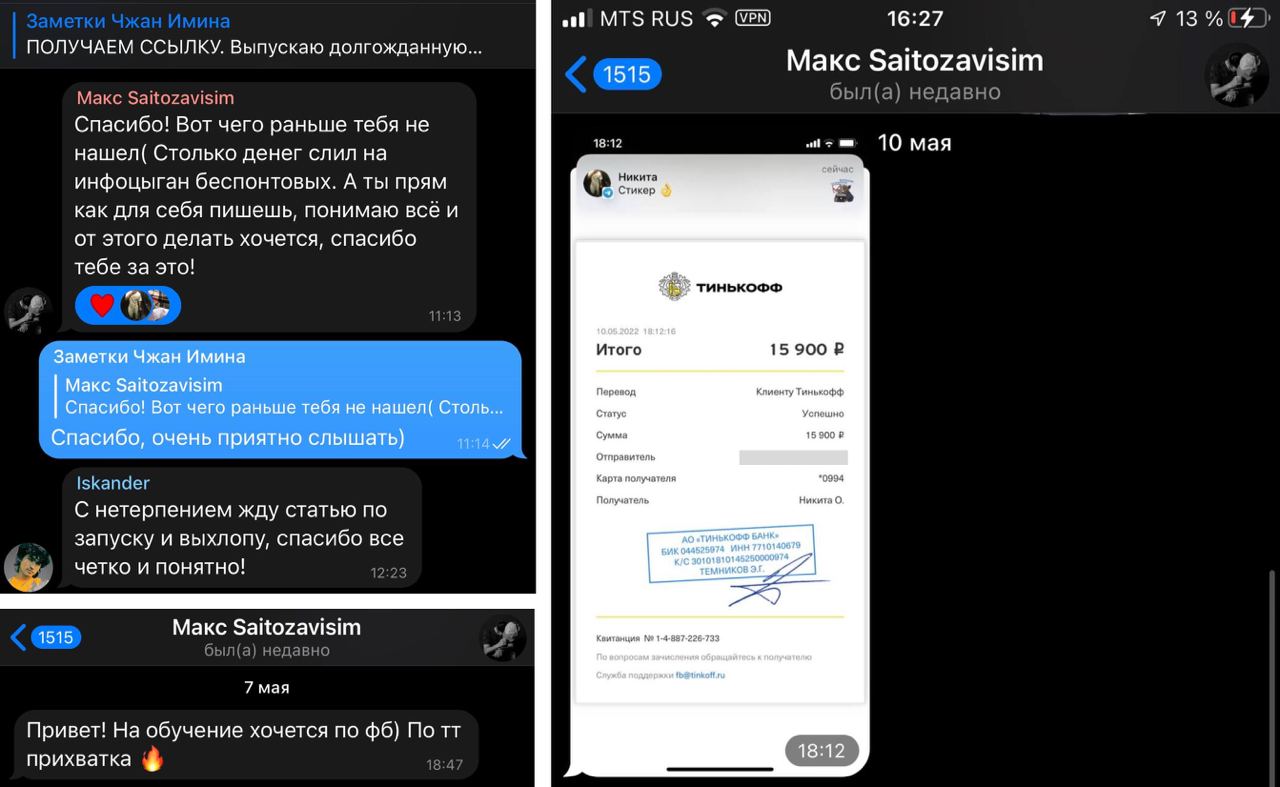 На днях мне отписал человек, который вписывался ко мне в закрытый канал по ТТ, чтобы вписаться ещё и на обучение по ФБ (на скринах его коммент под одним из последних постов и последующая оплата).