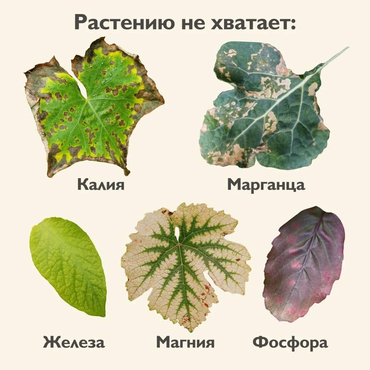 По внешнему виду листьев можно определить, каких витаминов и минералов не хватает растению