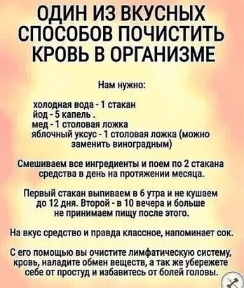 ✔️ Пейте больше воды! 90% людей пьют очень мало воды. Речь именно о чистой природной воде, а не о жидкостях. Взрослый человек должен выпивать ежедневно 2-2,5 литра воды. В жару еще больше. Приучайте своих детей пить воду. Натуральная вода — первое и очень мощное средство против образования тромбов.
