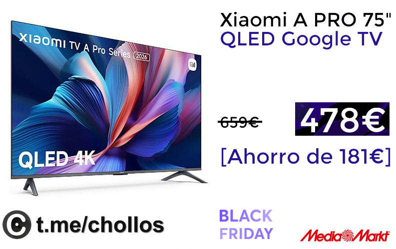 🔹Xiaomi A PRO 75" QLED Google TV solo 478€❗️✔️ (PVP: +659€)