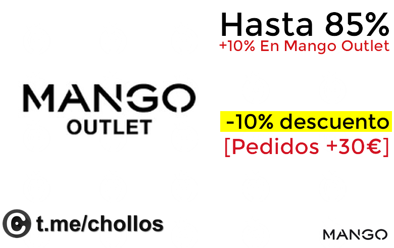 ✨En Mango Outlet tienen una promoción TOP, en la que nos descuentan un 10% EXTRA con el código de descuento si nuestro pedido es igual o superior a 30€. Además, teniendo en cuenta que tiene muchísimos productos rebajados hasta el 85% nos podemos hacer con una buena cesta de chollitos.