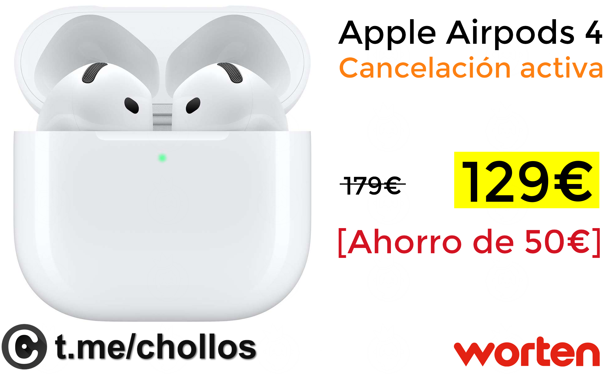 🔹Apple Airpods 4 Cancelación activa solo 129€❗️💥 (PVP: +179€)