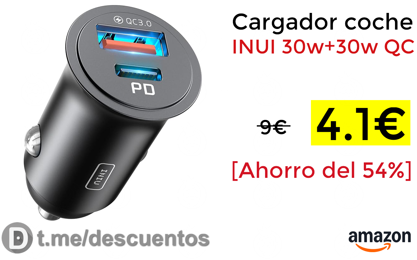 🔹Cargador coche INUI 30w+30w QC solo 4.1€❗️⚡️ (PVP: +9€)