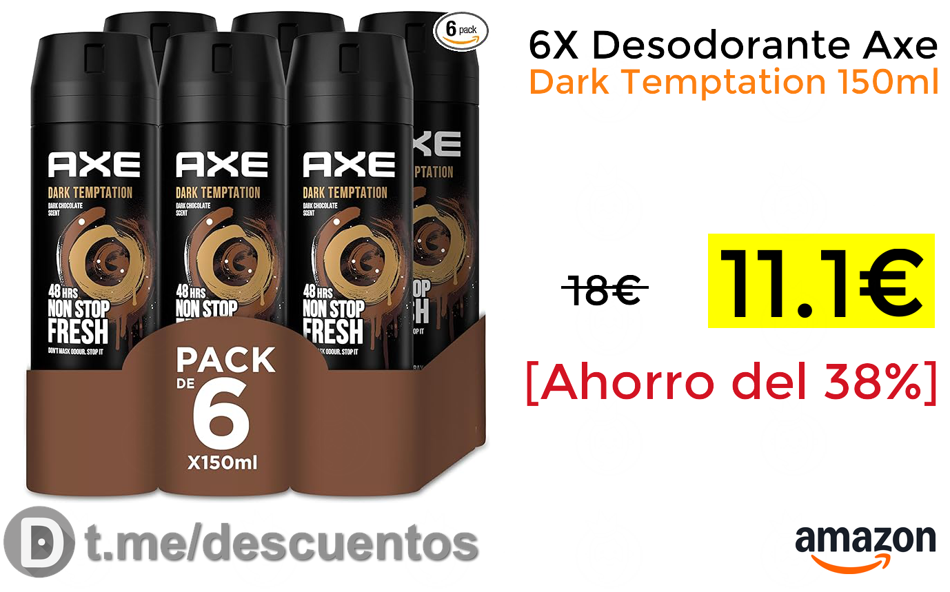 🔹6X Desodorante Axe Dark Temptation 150ml solo 11.1€❗️⚡️ (PVP: +18€)