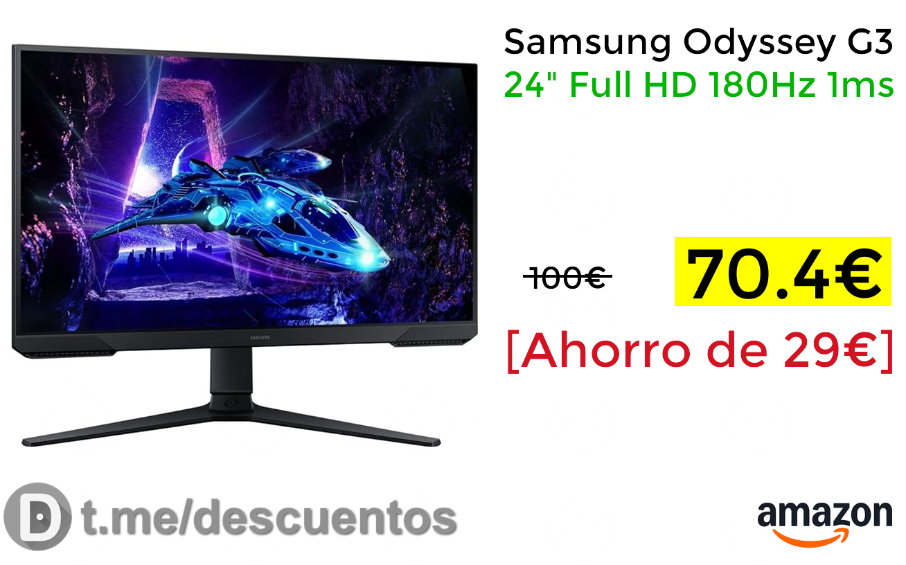 🔹Samsung Odyssey G3 24" Full HD 180Hz 1ms solo 70.4€❗️⚡️ (PVP: +100€)