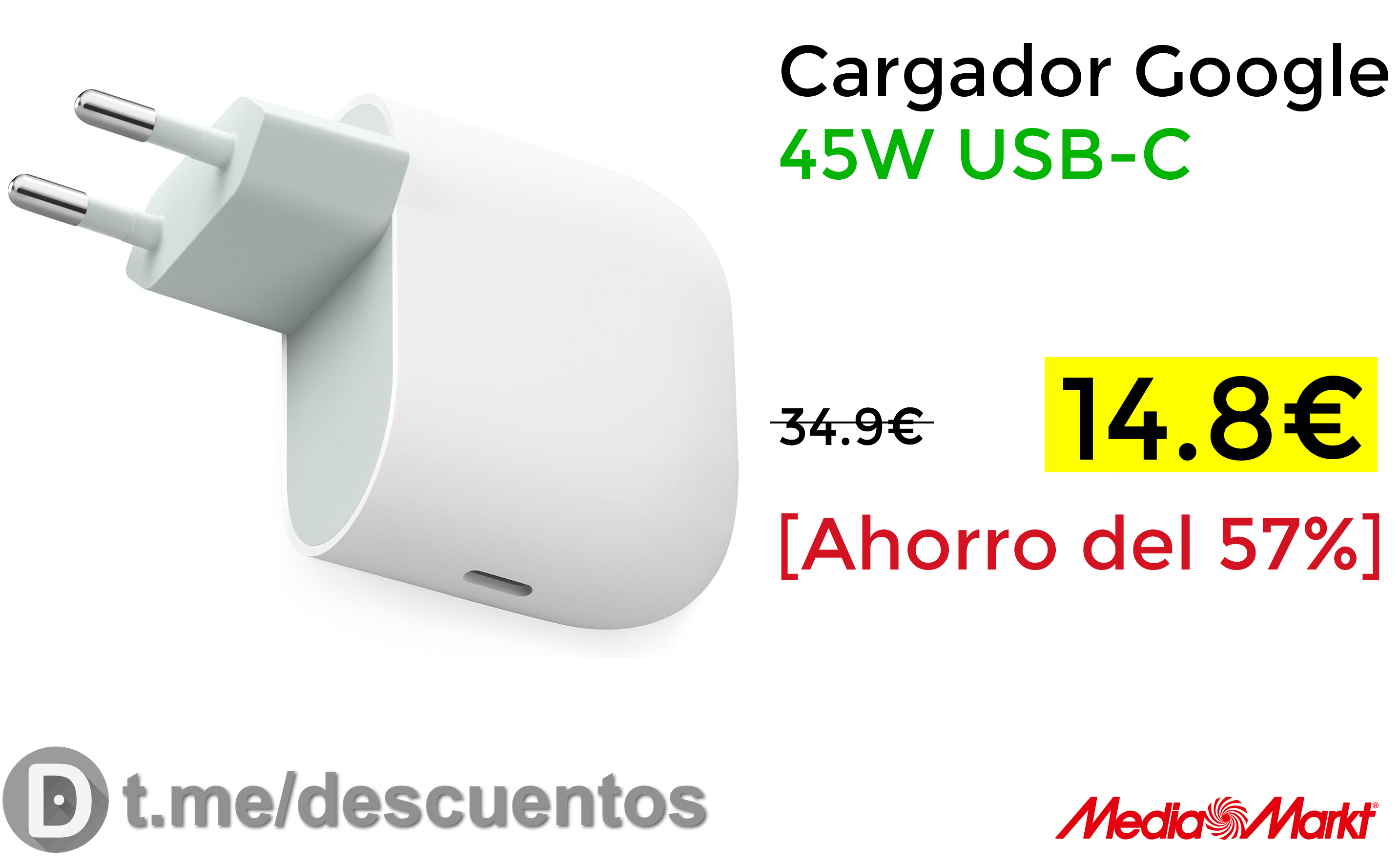 🔹Cargador Google 45W USB-C solo 14.8€❗️⚡️ (PVP: +34.9€)