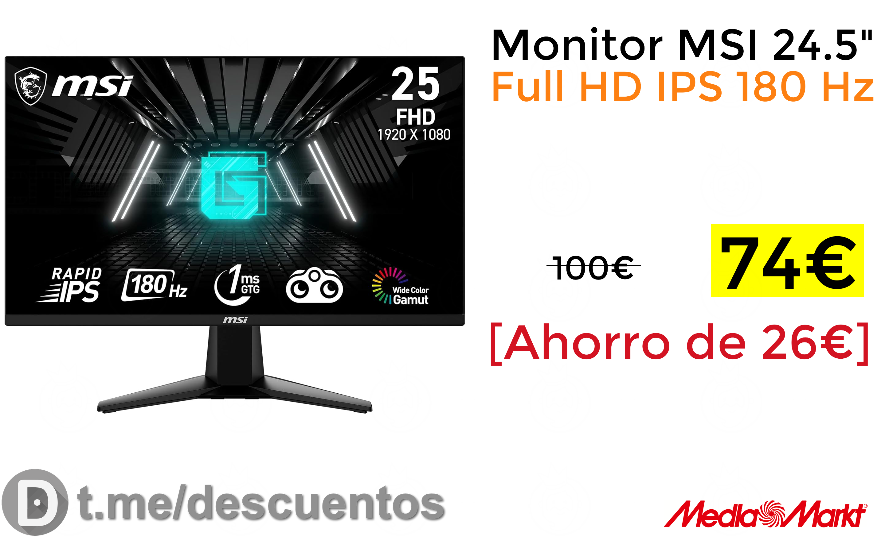 🔹Monitor MSI 24.5" Full HD IPS 180 Hz solo 74€❗️⚡️ (PVP: +100€)
