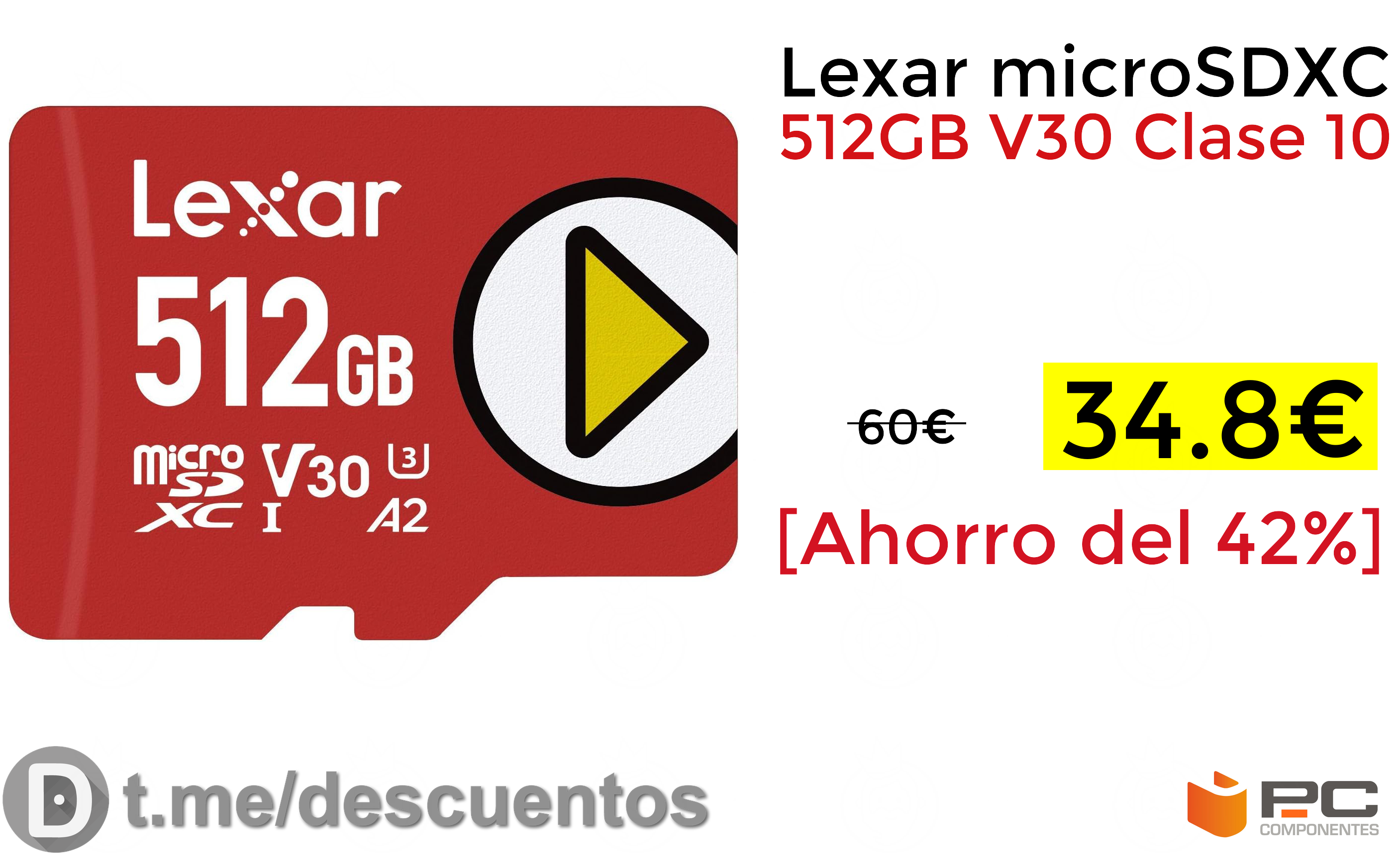 🔹Lexar microSDXC 512GB V30 Clase 10 solo 34.8€❗️⚡️ (PVP: +60€)