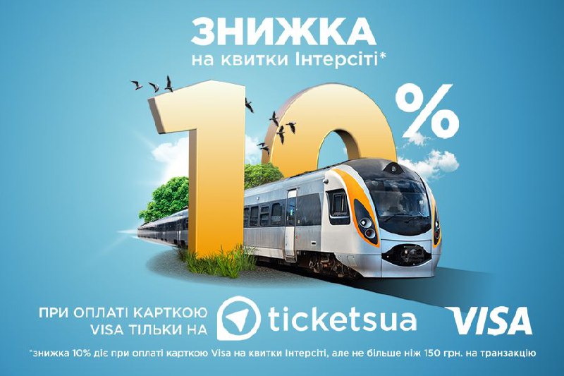 Отримайте 10% знижки на квитки на поїзди "Інтерсіті" при оплаті карткою Visa!