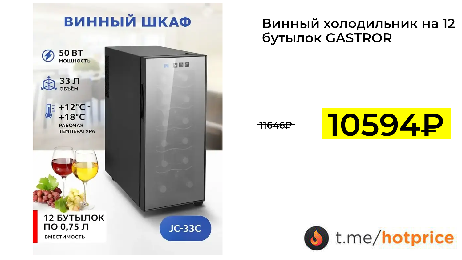🔹 Винный холодильник на 12 бутылок GASTRORAG JC-33C (с ВБ кошельком) за 10594₽ ❗️ (везде: 11646+₽)