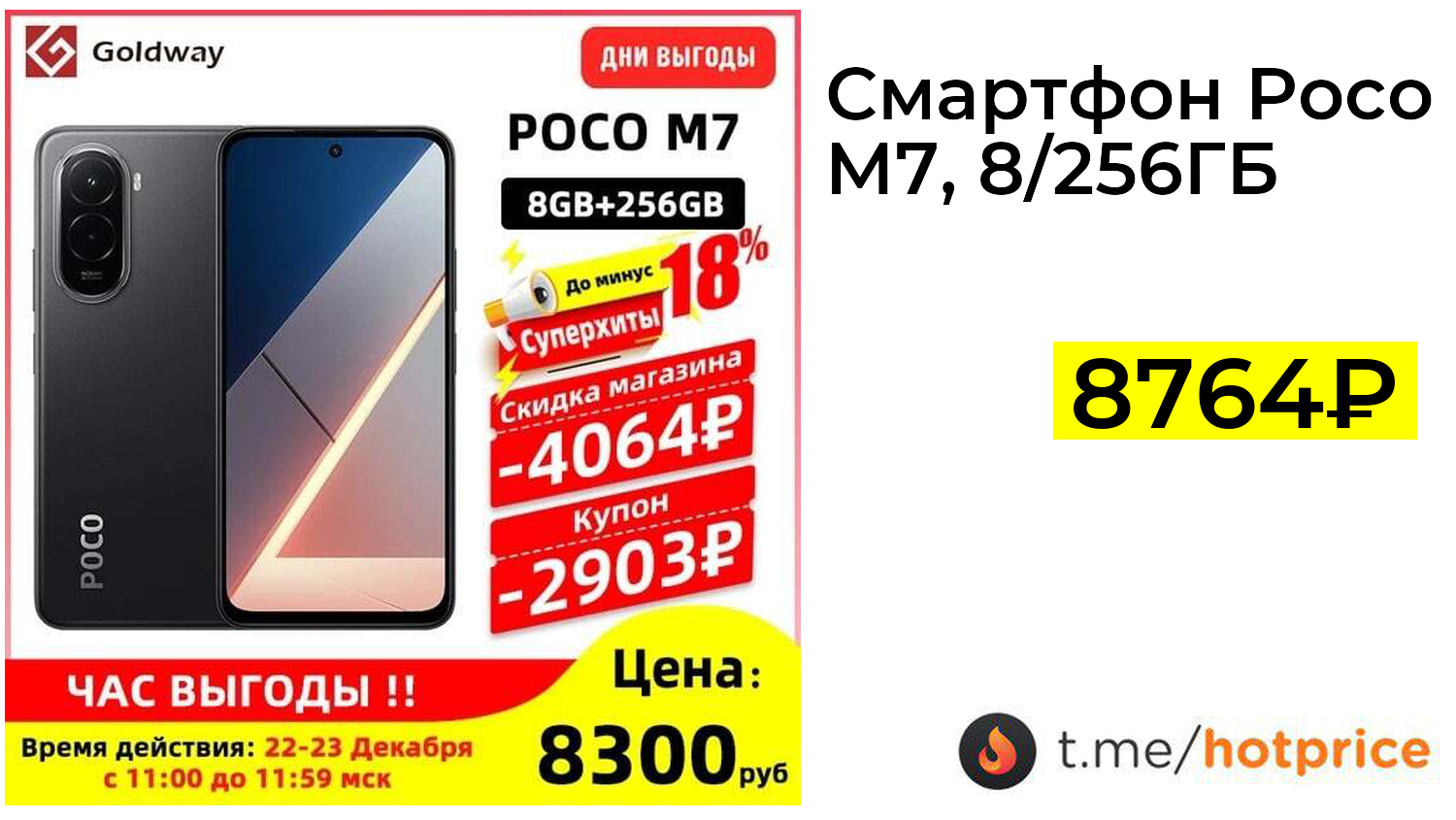 🔹 Смартфон Poco M7, 8/256ГБ за 8764₽ ❗️