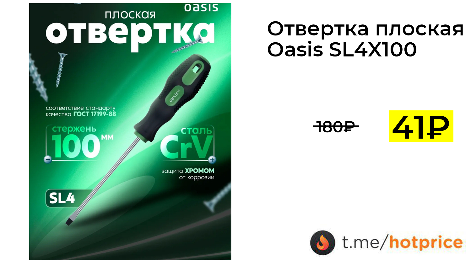 🔹 Отвертка плоская Oasis SL4X100 за 41₽ ❗️ (везде: 180+₽)