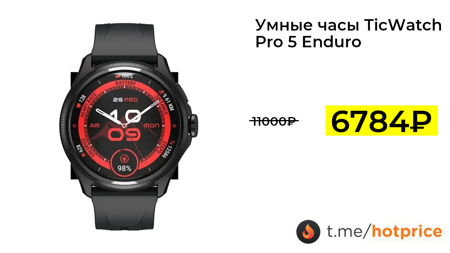 🔹 Умные часы TicWatch Pro 5 Enduro за 6784₽ ❗️ (везде: 11000+₽)