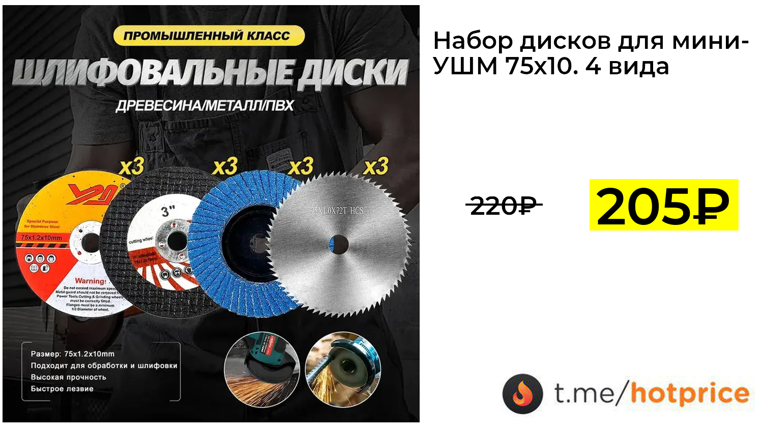🔹 Набор дисков для мини-УШМ 75x10. 4 вида по 3 шт.Цена с Озон картой. за 205₽ ❗️ (везде: 220+₽)