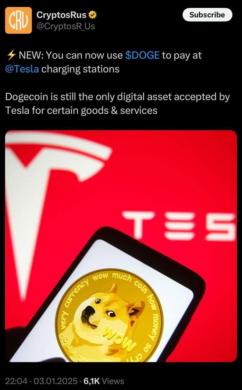 Также DOGE является единственным цифровым активом, который принимают для оплаты некоторых товаров от Tesla.