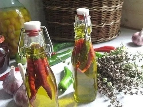 Использованный перец можно будет поставить в холодильник, чтобы потом добавлять в пищу, а процеженное масло красноватого цвета применять как растирку.