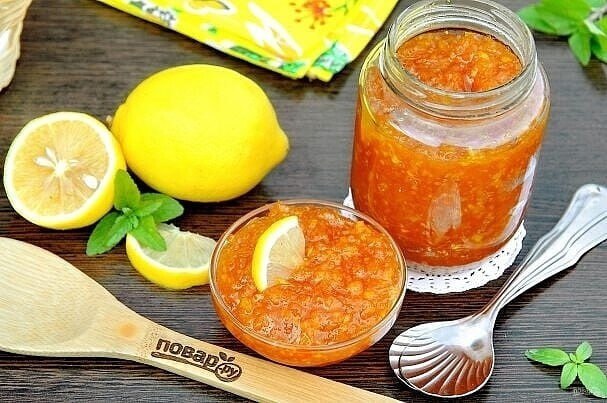 Морковь очистить, натереть на крупной терке. Выложить в банку. Лимон очистить от кожуры, мелко нарезать, очистить от семечек. Можно использовать и кожуру лимона, хорошо промытую.