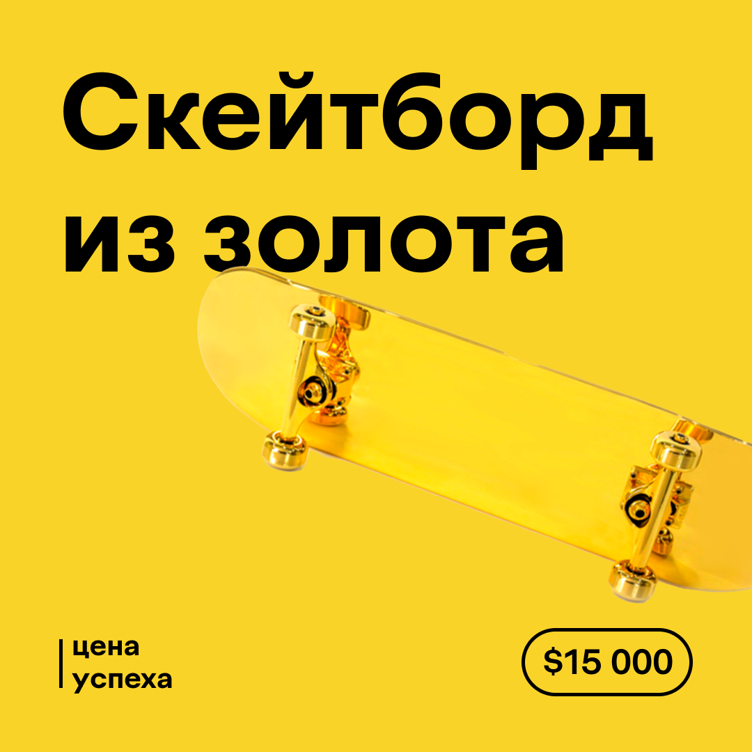 Самый дорогой скейтборд в мире. Разработан целиком из чистейшего золота, оценивается в 15.000$. Продается в комплекте с хлопковыми перчатками для сохранения зеркального блеска. Создан дизайнером Matthew Willet специально для магазина SHUT.