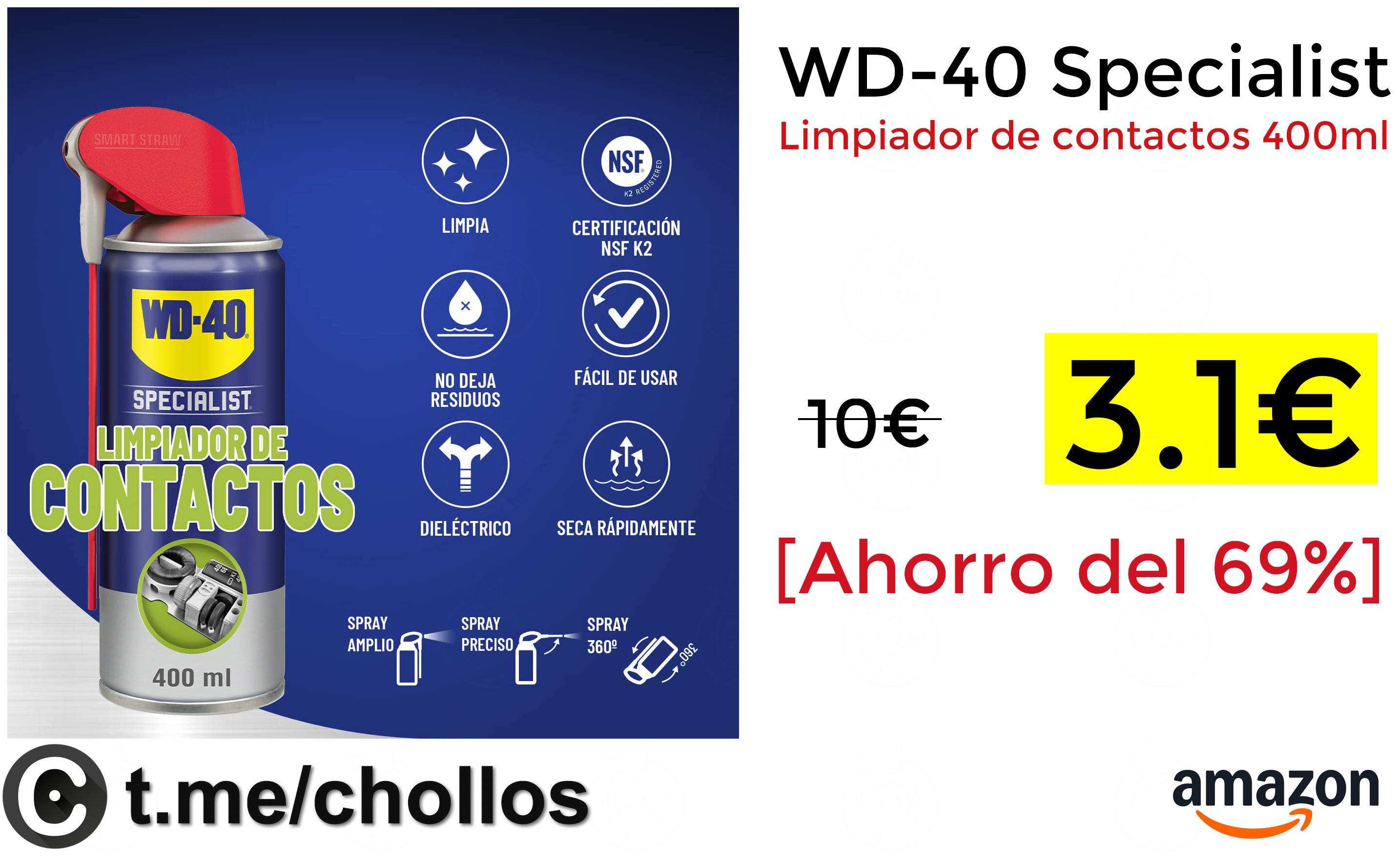 🔹WD-40 Specialist Limpiador de contactos 400ml solo 3.1€❗️💥 (PVP: +10€)