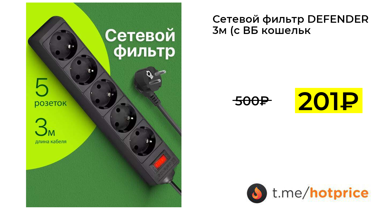 🔹 Сетевой фильтр DEFENDER 3м (с ВБ кошельком) за 201₽ ❗️ (везде: 500+₽)