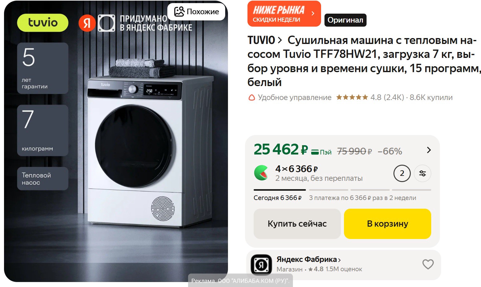 Можно забрать заказ из магазина или оформить бесплатную доставку при выкупе от 2000₽. | 17 113 |