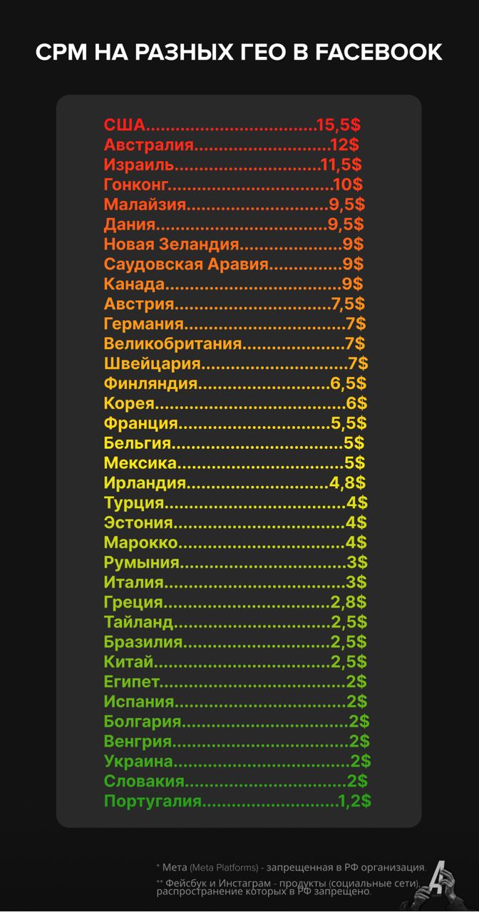 CPM НА РАЗНЫХ ГЕО В FACEBOOK.