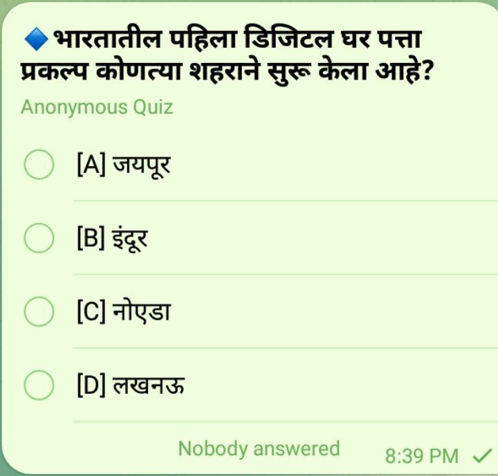 भारतातील पहिला डिजिटल घर पत्ता प्रकल्प कोणत्या शहराने सुरू केला आहे?