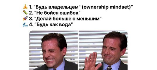 - Иметь свои ценности. Уважай команду, но не принимай слоганы как догму.