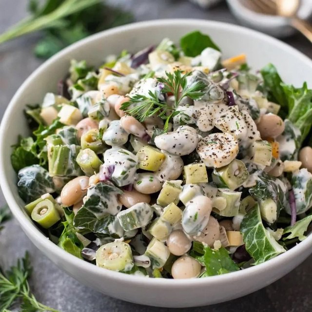 7. Перемешивайте все продукты в салатнике с майонезом и посолите их по вкусу. Подавайте этот салат спустя 15 минут после приготовления, а если есть больше времени в запасе, дайте ему постоять в холодильнике хотя бы 1 час.