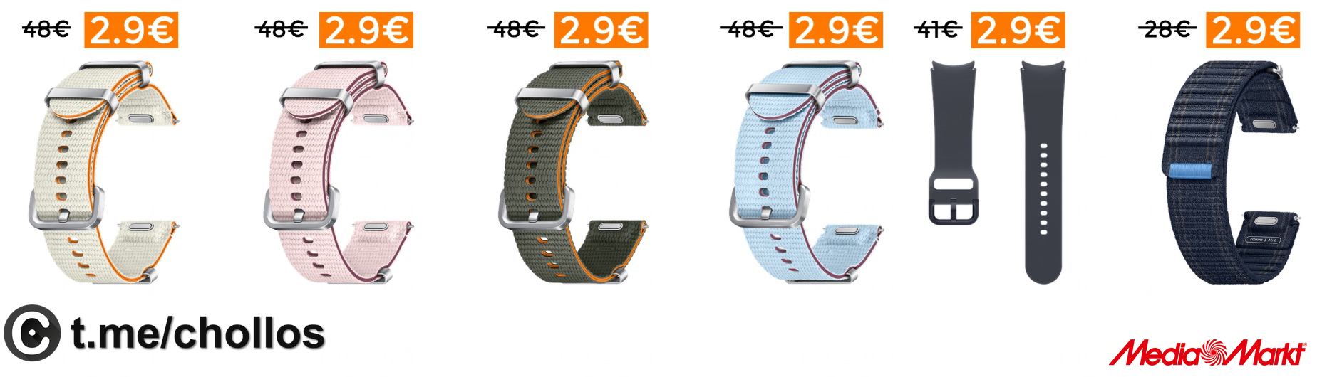 ✨MediaMarkt liquida una buena selección de correas originales Samsung para los relojes inteligentes Watch6 y 7, con muchos modelos y colores disponibles, todos ellos por 2,9€ con recogida en tienda gratuita.