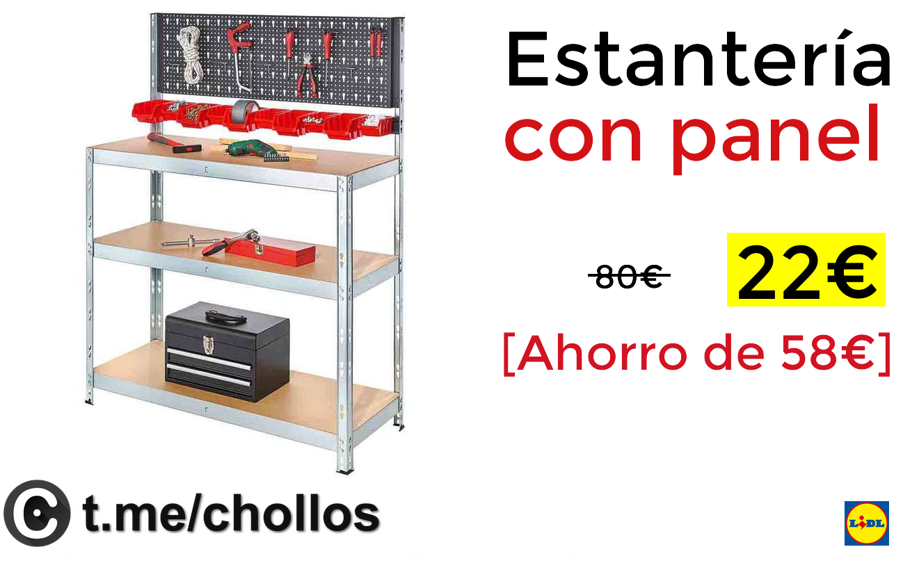 ✨A precio de chollo esta estantería con unas medidas de 100 x 136 x 40 cm. Tiene 3 baldas las cuales aguantan hasta 200 kg cada una, además incluye un panel perforado para poner herramientas.