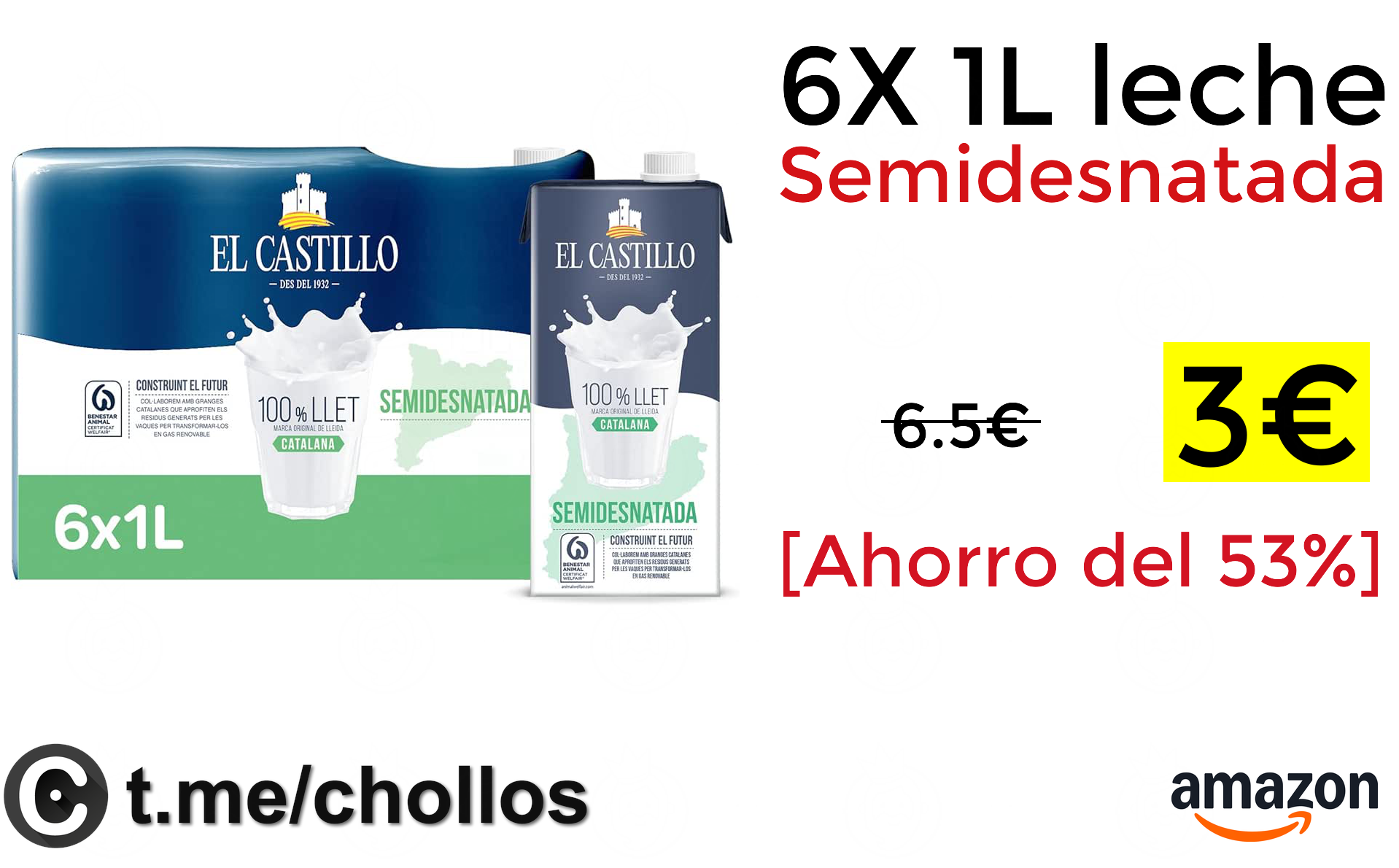 ✨Preciazo para esta caja de 6X botellas de 1 litro de leche semidesnatada El Castillo. Elaborada con leche procedente de vacas criadas en prados y montañas, con sabor equilibrado y calidad desde 1932