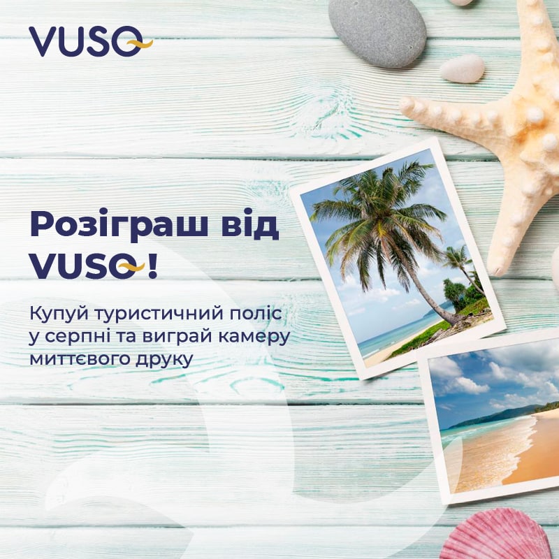 🗺Любите подорожувати? Залиште собі на згадку яскраві враження з подарунком від ☂️VUSO. Тільки в серпні, при оформленні туристичного поліса, ви можете виграти 📸камеру миттєвого друку.