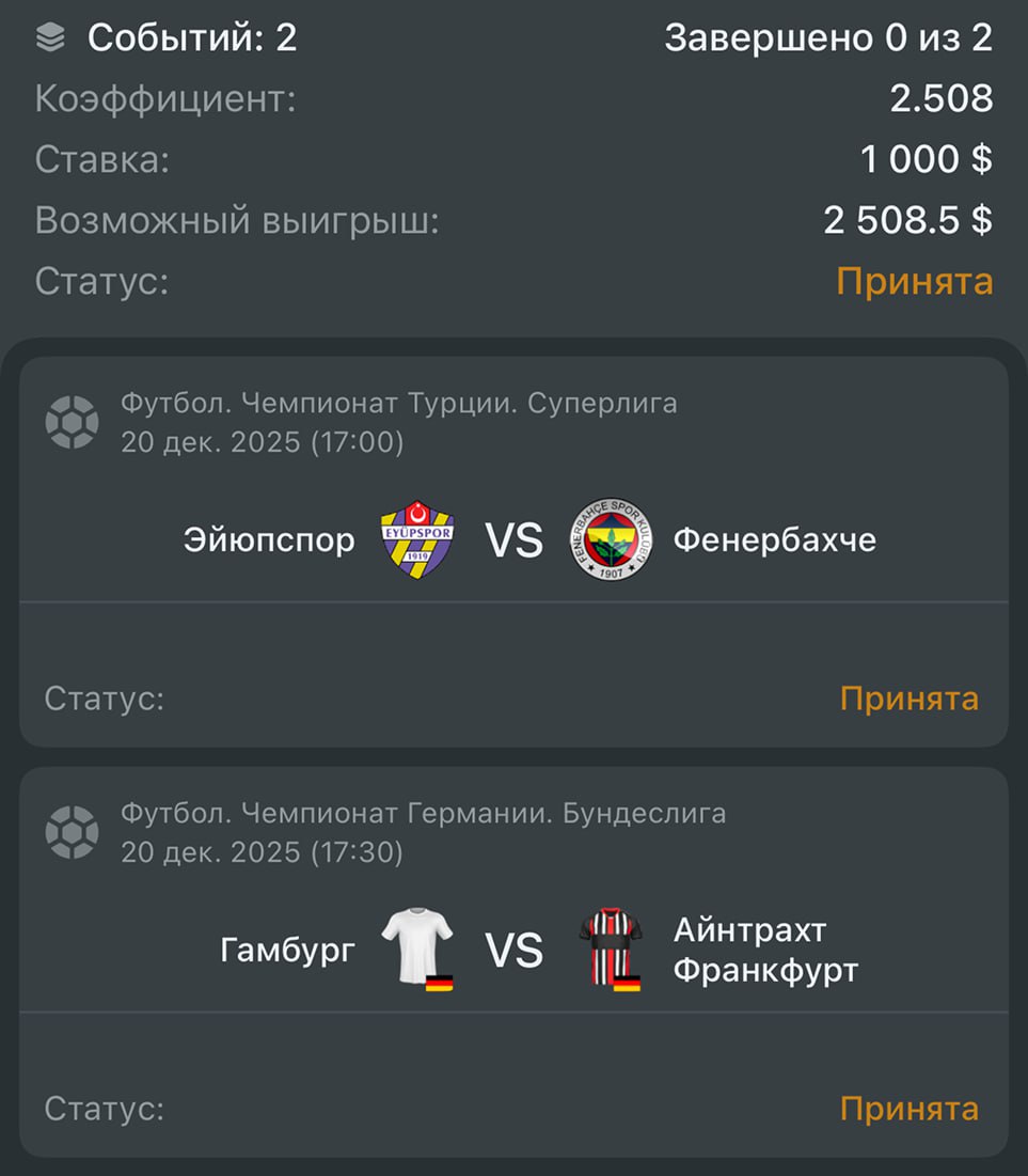 Готов надёжный двойник на Турецкую Суперлигу 🇹🇷 и немецкую Бундеслигу 🇩🇪