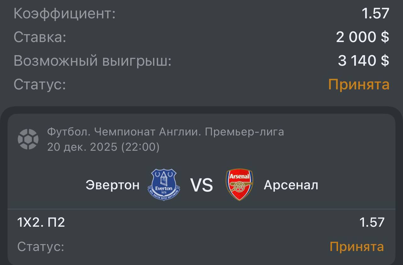 Эвертон, напротив, испытывает серьёзные проблемы именно против топ-клубов. Ириски не забивали в половине домашних матчей сезона и обладают одной из самых слабых атак АПЛ — меньше голов только у Бернли, Ноттингема и Вулверхэмптона. Против команд уровня Тоттенхэма и Ньюкасла Эвертон дома уступал без шансов, а вскрыть организованную оборону Арсенала для них задача практически нерешаемая. Разница в классе, мотивации и качестве реализации слишком велика. В таких условиях ставка на победу Арсенала выглядит логичным и обоснованным выбором.